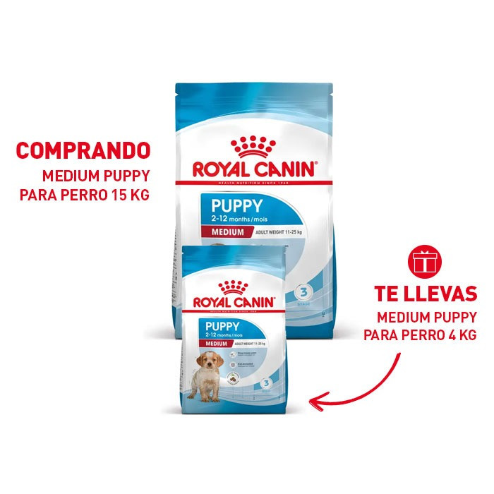 Royal Canin Medium Puppy es un alimento completo especialmente formulado para cachorros de razas medianas (11-25 kg de peso adulto) en su fase de crecimiento, desde los 2 hasta los 12 meses de edad. Este alimento está diseñado para satisfacer las altas necesidades energéticas propias de este período, asegurando un desarrollo saludable y equilibrado.