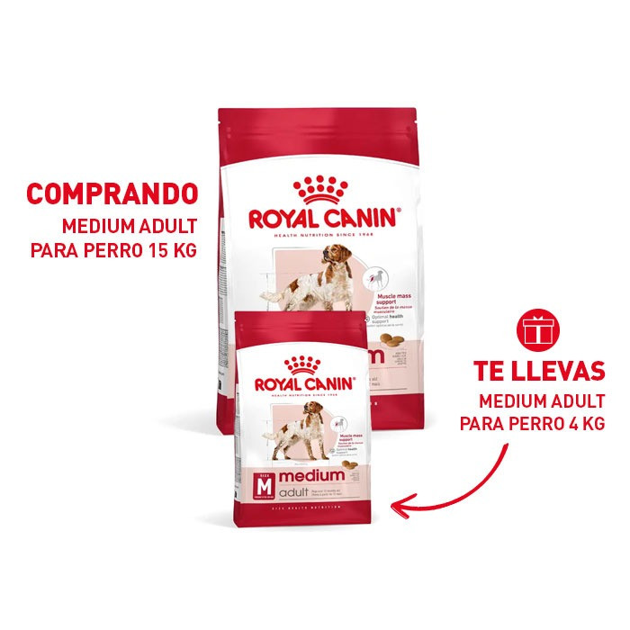 Royal Canin Medium Adult es un alimento completo y equilibrado especialmente formulado para perros adultos de razas medianas (peso entre 11 y 25 kg) a partir de los 12 meses de edad. Este alimento contribuye al fortalecimiento de las defensas naturales del perro gracias a un exclusivo complejo antioxidante y a los manano-oligosacáridos, que apoyan el sistema inmunológico.